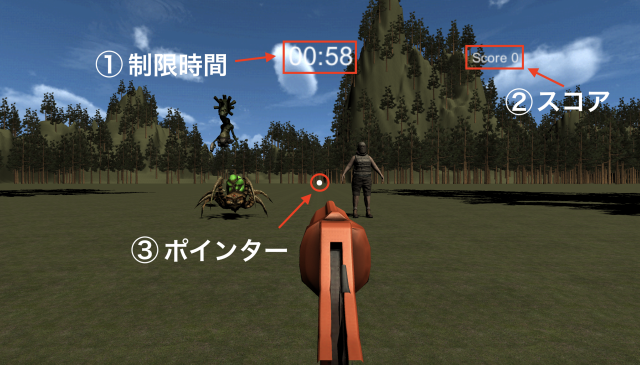 ③ポインターをオブジェクトに合わせ注視することで敵を倒せます。
