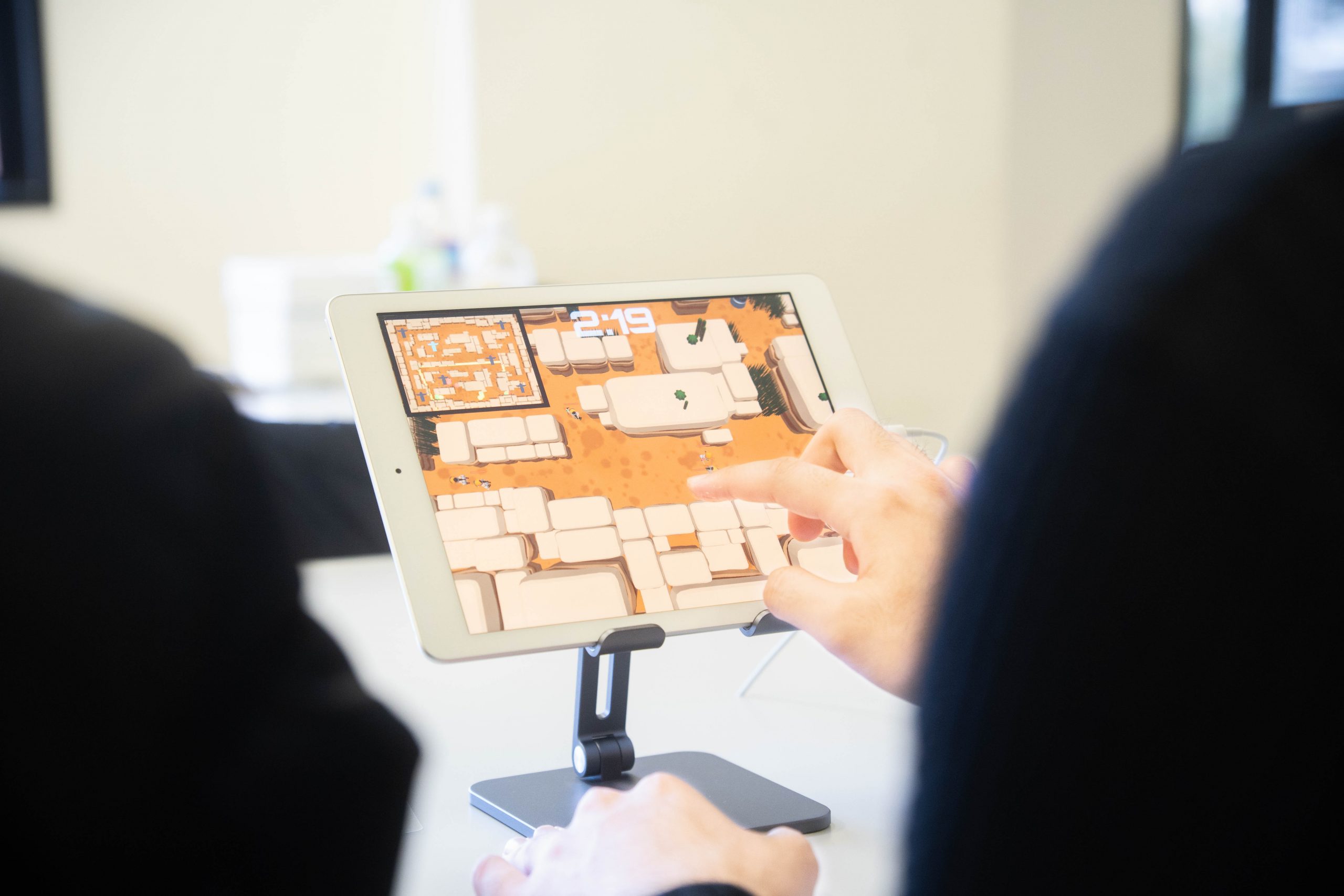 それぞれのトーテム間に複数の道があるため、挟み撃ちすることやバラバラに逃げることが可能になっており、流動的にゲームが変化しやすく、最後まで膠着した状態になりやすいため、逆転を狙えるような構造になっています。 トーテムの配置を工夫することでプレイスタイルに合わせて占拠するトーテムのパターンが複数生まれやすくなるように意識しました。 また、積極的に行動したプレイヤーが優位性を保てるように占拠したトーテムに入っているとユニットのキャラクタを少しずつ回復するようにしました。
